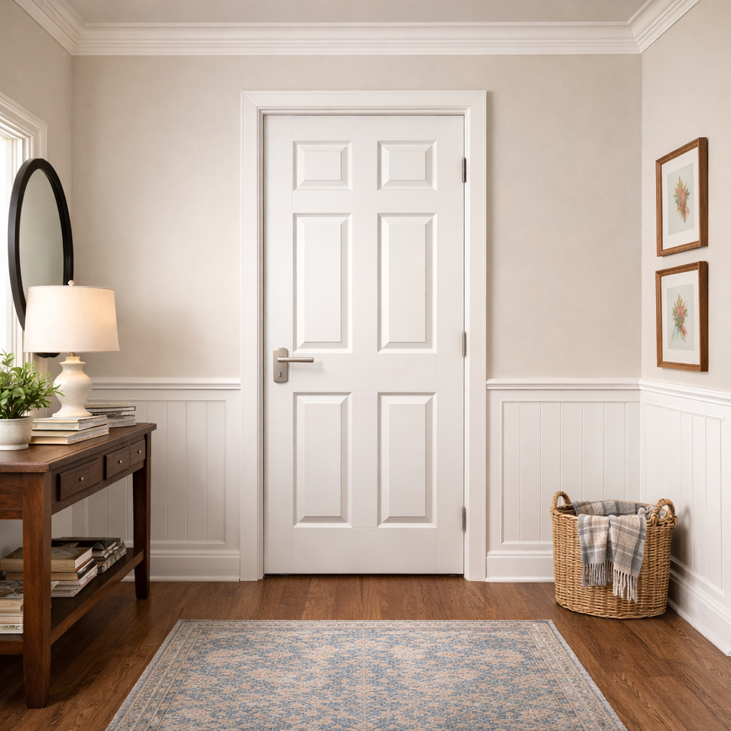 A: It can be difficult. Flush doors lean heavily towards modern, minimalist, or industrial aesthetics. For traditional, colonial, or farmhouse homes, panel doors (like the 6-panel or Shaker style) are usually the better architectural fit.