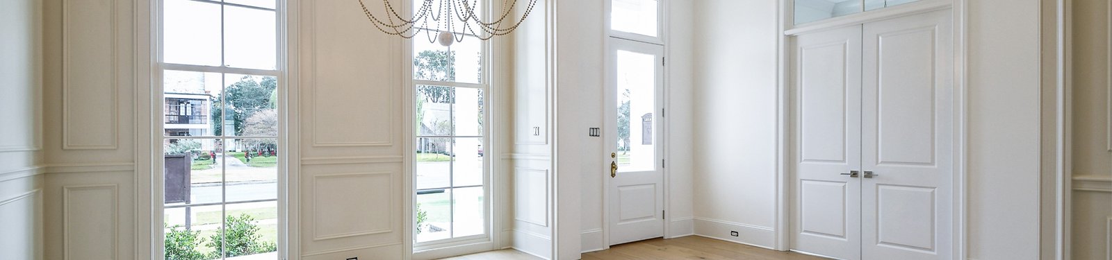Interior and exterior doors, including Shaker, Molded, primed, fiberglass doors, and so on, customizable in size, style, and finish.